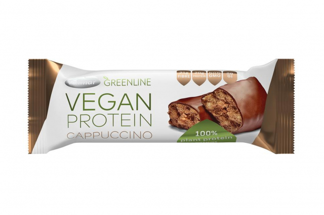 Proteinová tyčinka s rostlinnými bílkovinami v tmavé kakaové polevě s příchutí cappucino. Tyčinku oceníte jako rychlou svačinku do kapsy.