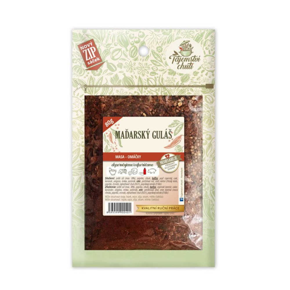 Směs je určená na přípravu klasického guláše, ale i do polévek a omáček, pod pečená a dušená masa a všude tam, kde chceme docílit nejenom pikantní chuť, ale i barvu pokrmu. Koření neobsahuje glutaman sodný.